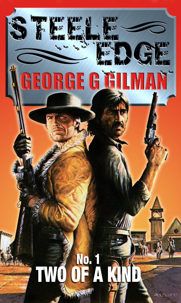Not only did Tony, by combining two of his original works, produce a cover for the first Edge eBook that was totally new but retained the classic feel, he also threw himself into the project wholeheartedly. Following the publication of Edge: The Loner later this month, the Edge series will settle into a schedule of quarterly releases. The books will be released in the correct chronological order but with two of the original novels in each eVolume. As well as the 61 Edge novels originally published by New English Library Terry also wrote three team-up novels featuring two of his most popular characters, Edge and Adam Steele and as soon as Tony learned that the plan was to offer the first of these team-up novels to readers free to coincide with the publication of the second Edge eBook, which will contain the novel Ten Thousand Dollars American and Apache Death, he jumped in by promptly creating a cover for that book also. The image is exclusively revealed here. And in my humble opinion Tony's new image is even better than the cover he produced for the original paperback - the colour scheme and font this time out are far more eye-catching. The title Steele/Edge, a nod to the popular fanzine of the day which was edited by Mike Stotter, also works far better than having Edge's name leading as in the original paperback series.